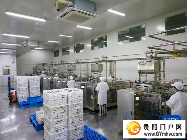 贵州山王果健康实业有限公司5G智慧工厂全自动灌装机生产现场。(新华社发)
